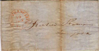 April 26 (1850) San Francisco to Stockton, CA - CDS with integral 12-1/2 rate, representing the unpaid West Coast single rate. Unlike the 80 double transcontinental rate version, there is no "25" double rate version of this CDS.